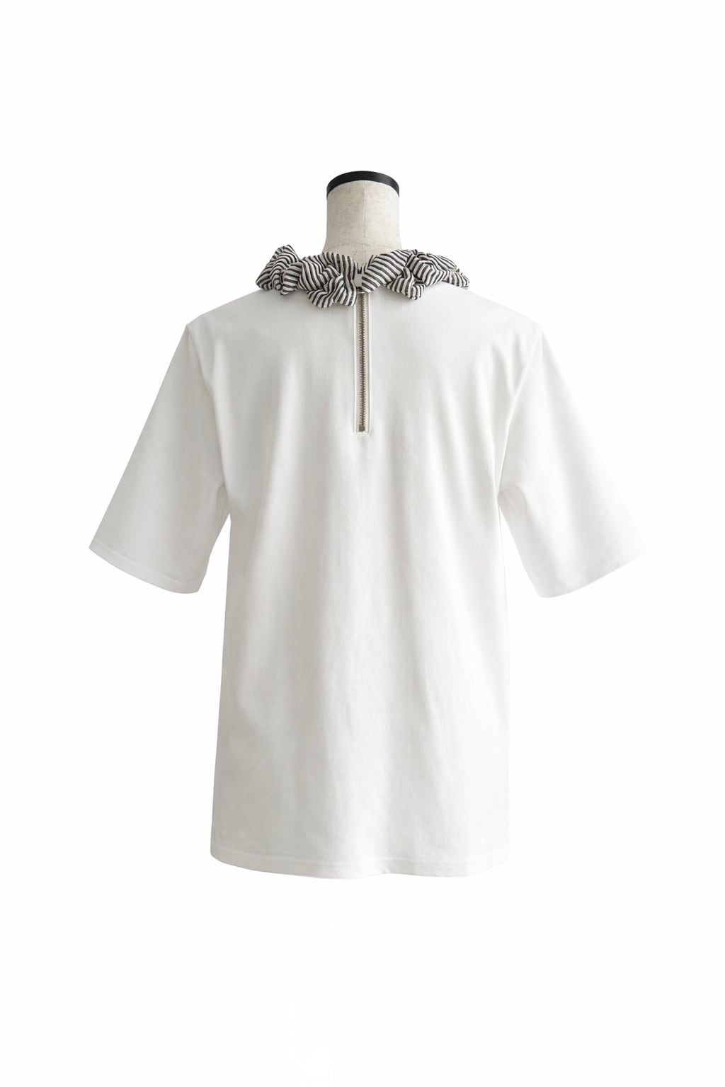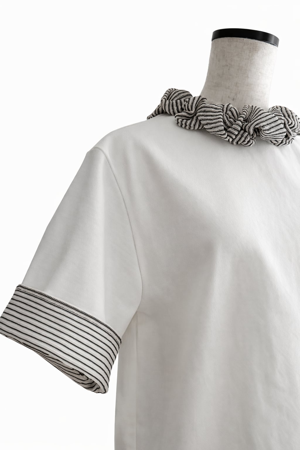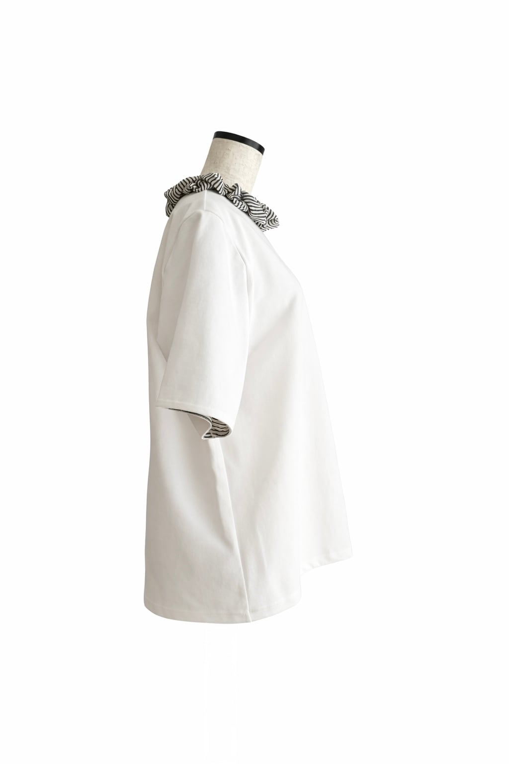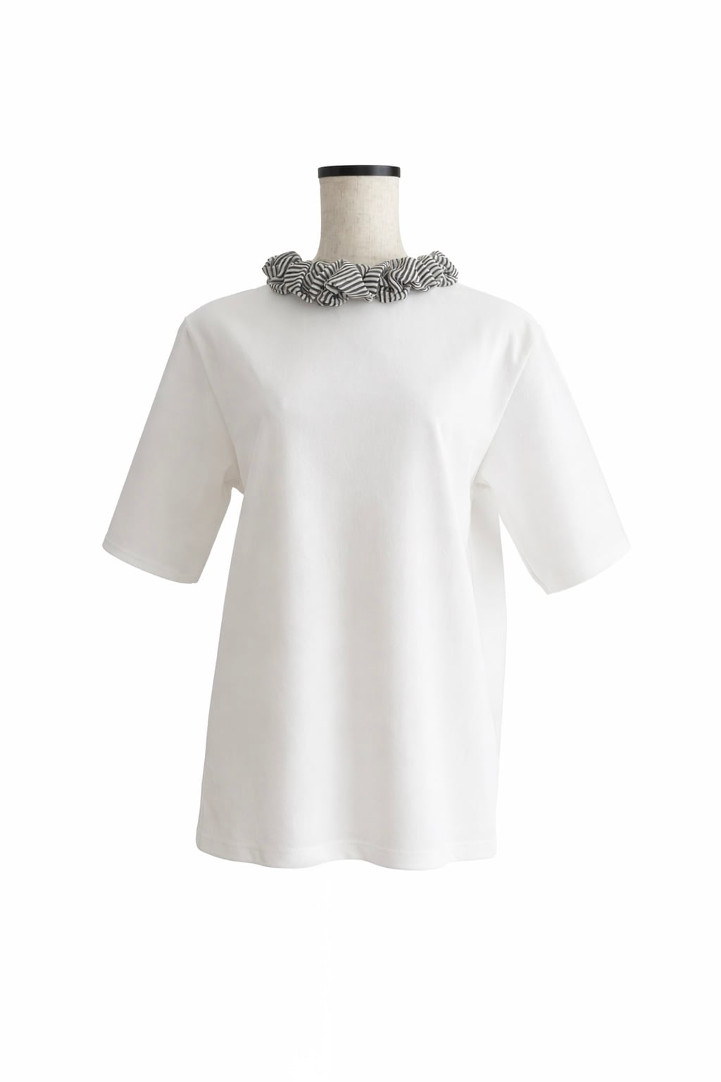 シンプルなカットソーに、立体的なフリルカラーを添えた一着をご紹介。
