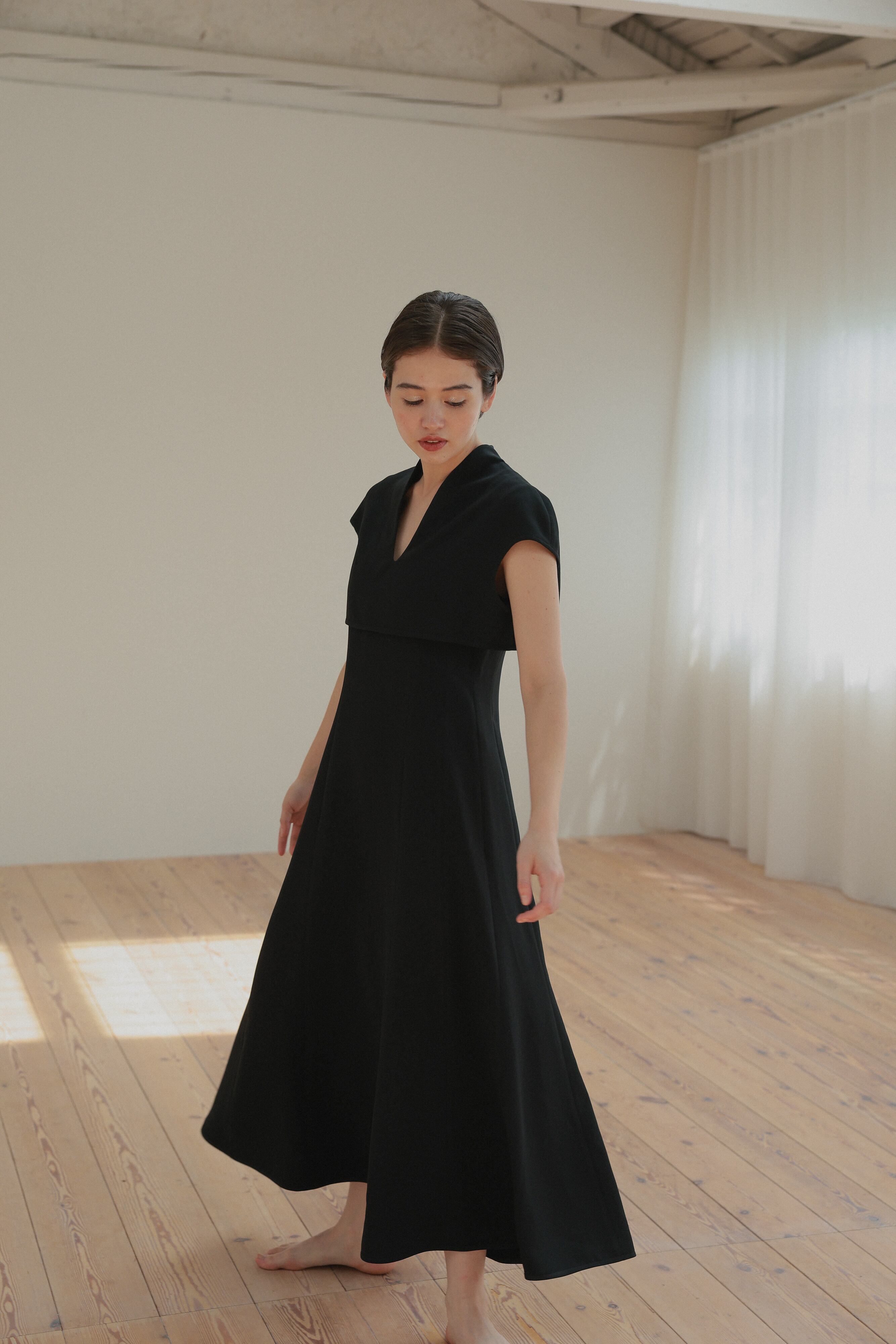 ▪️ 綺麗なドレープをきかせたロングワンピースを作製しました。たっぷりの生地を使用し、動くと美しいシルエットを演出してくれます。首元はシンプルながらもデザイン性のある形で、首を長く見せてくれます。ケープのようなデザインのフレンチスリーブは気になる二の腕をすっきり見せるだけではなく、ウエスト位置を高く、スタイルアップにしてくれます。女性らしい優美な印象になるこちらのワンピースは普段使いはもちろん、特別な日やお子様の学校行事などにもお勧めです。